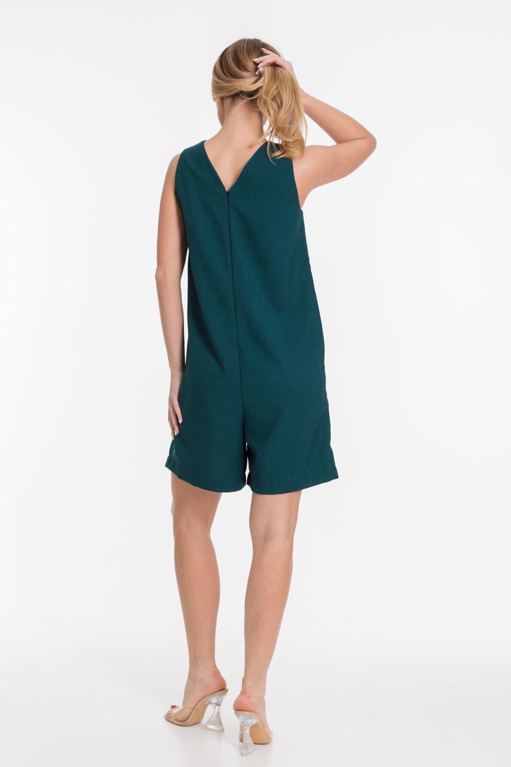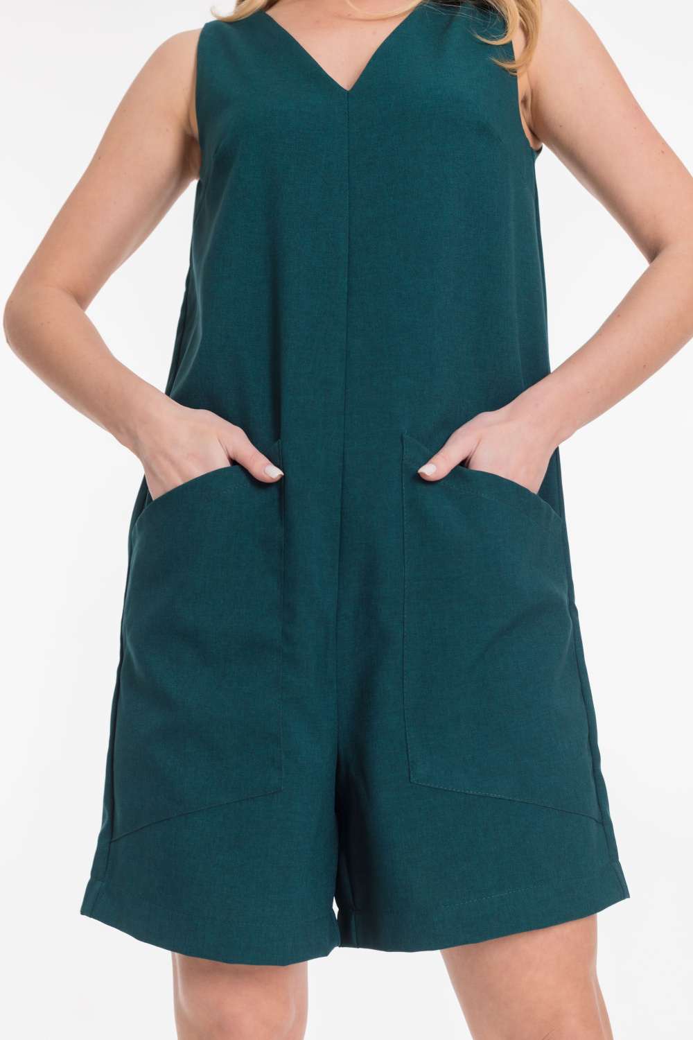 Комбинезон из полотна "искусственный лен". V-образный вырез горловины, карманы, застежка на молнию.