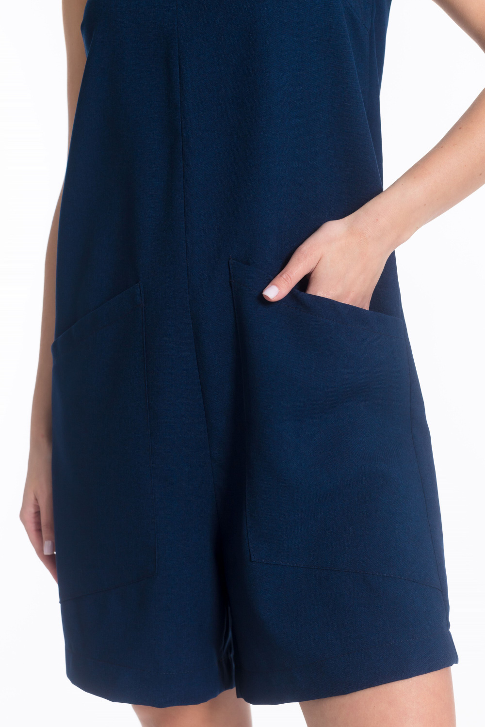 Комбинезон из полотна "искусственный лен". V-образный вырез горловины, карманы, застежка на молнию.