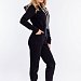Комбинезон из однотонного футера с начёсом. С капюшоном, застёжкой на молнию и накладными карманами спереди. По талии кулиска с резинкой. Рукава и низ брюк с притачными манжетами. С левой стороны вышивка.