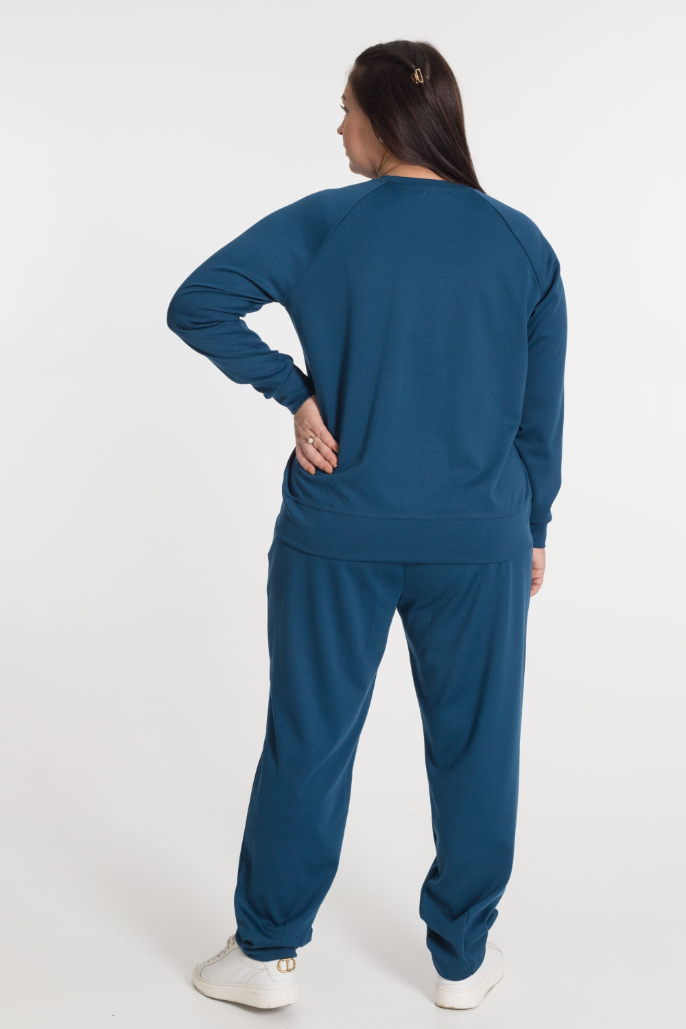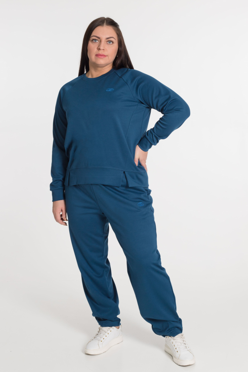 Брюки - свободные вверху и зауженные  к низу, боковые карманы, притачной пояс.