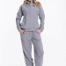 Женский серый флисовый костюм из брюк и толстовки — отличный выбор для повседневной носки. Воротник-стойка с застёжкой на молнию, спущенные рукава и манжеты на рукавах обеспечивают комфорт. Вышивка спереди и карман-кенгуру придаёт изделию оригинальность. Крой брюк свободный. Широкий пояс на резинке и низ штанин на резинке сохраняют тепло. Боковые карманы на брюках практичны, а имитация ширинки добавляет изюминку.