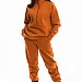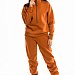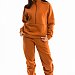 Костюм выполнен из однотонного футера с начёсом. Толстовка с воротником-стойкой и застёжкой на молнию до отрезной нижней части. Рукава и низ толстовки с манжетами из основного полотна. Пояс и низ брюк на резине, по бокам размещены карманы.