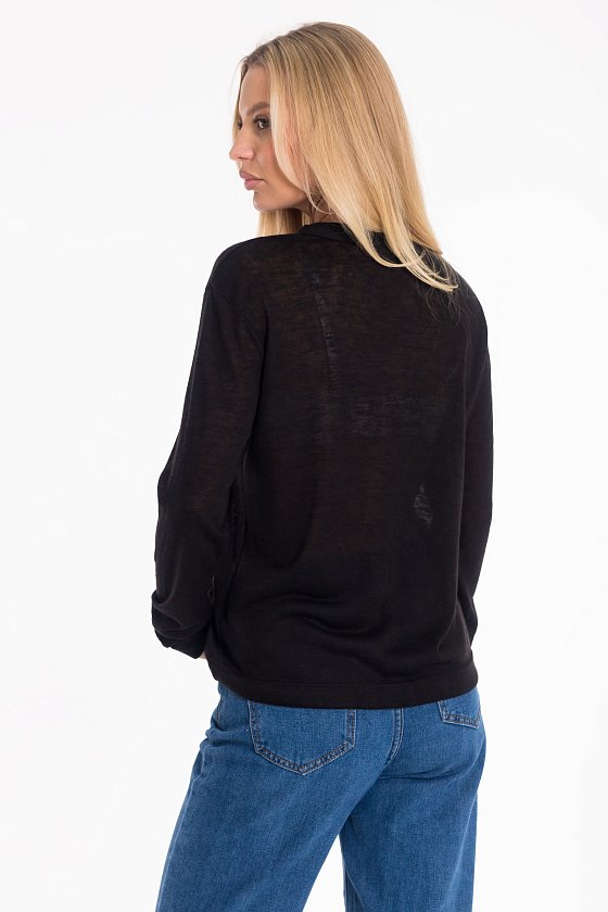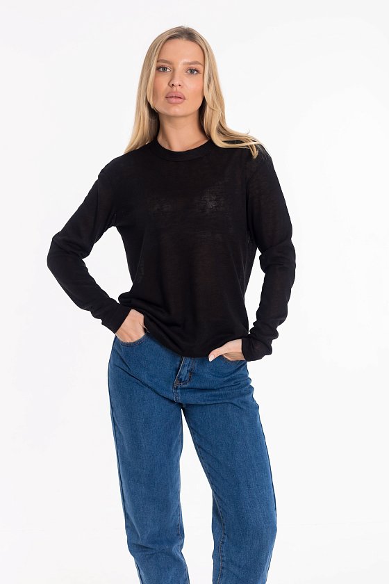 Женский лонгслив из полотна "поливискон". Модель свободного силуэта со спущенной линией плеча и круглой горловиной, оформленной широкой бейкой. Универсальный вариант для комфортных повседневных образов.