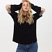Женский лонгслив из футера двухнитки в чёрном цвете — универсальная и стильная основа для повседневного гардероба. Модель со спущенной линией плеча и свободным силуэтом обеспечивает комфорт и лёгкость в движении. Горловина оформлена притачной планкой, низ изделия дополнен аккуратной нашивкой-флажком, придающей современный акцент. Рукава можно трансформировать: при желании отстегнуть молнию и превратить лонгслив в футболку. Один предмет — два варианта образа, подходящих для любого сезона.