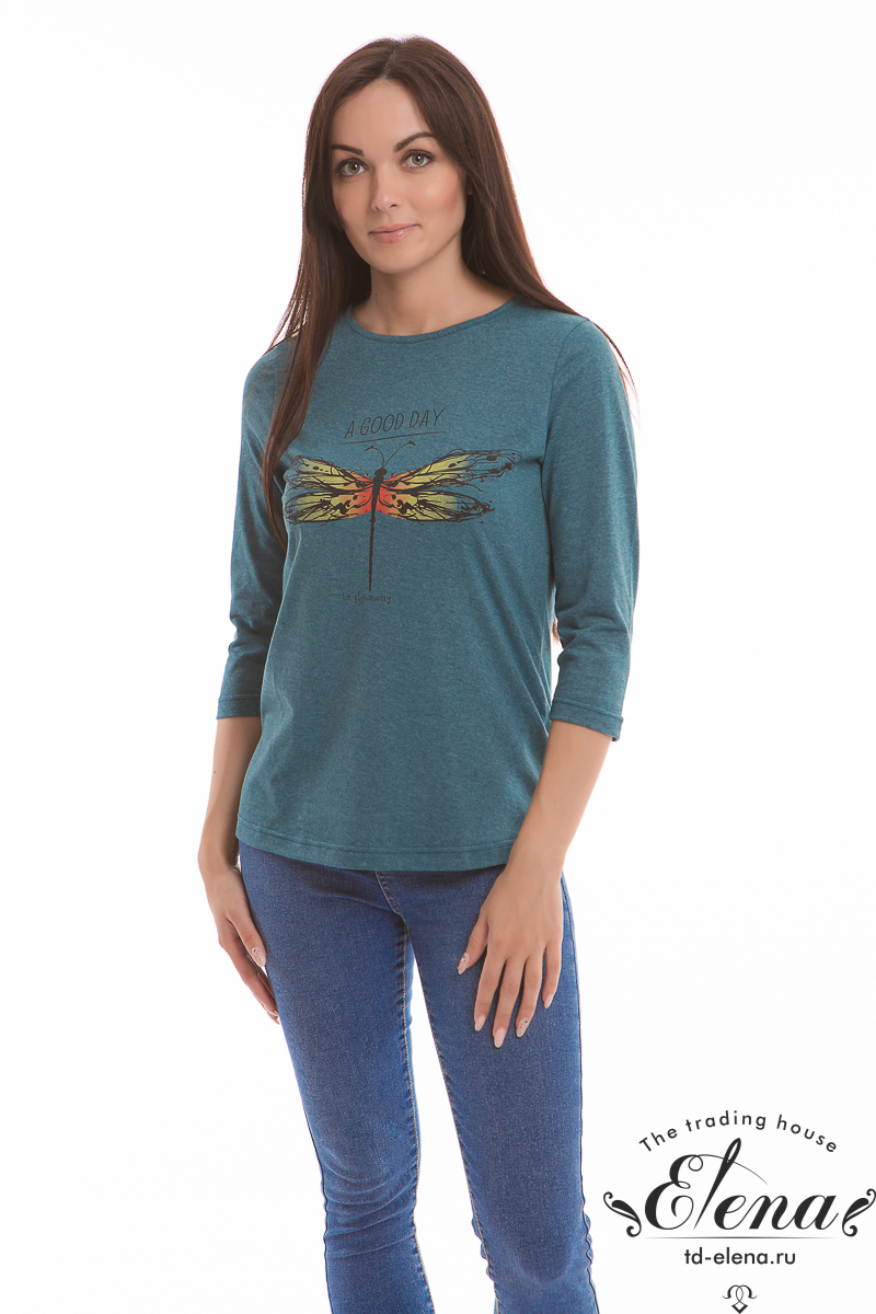 Футболка женская выполнена из кулирки. Рукава длиной 3/4, вырез горловины округлый. Спереди нанесён оригинальный принт.