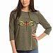 Футболка женская выполнена из кулирки. Рукава длиной 3/4, вырез горловины округлый. Спереди нанесён оригинальный принт.