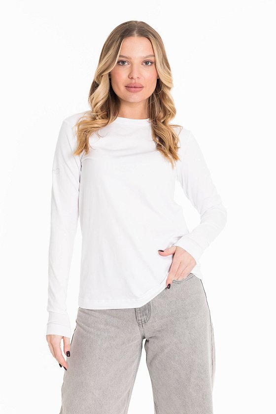 Лонгслив женский выполнен из однотонной кулирки с лайкрой. Модель с длинными рукавами и круглым вырезом горловины, оформленным планкой. Лонгслив-идеальная основа для любого образа, отлично сочетается с джинсами, брюками, кардиганами и другими предметами гардероба.