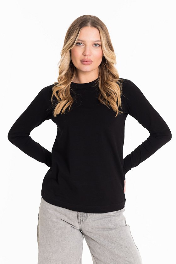 Лонгслив женский выполнен из однотонной кулирки с лайкрой. Модель с длинными рукавами и круглым вырезом горловины, оформленным планкой. Лонгслив-идеальная основа для любого образа, отлично сочетается с джинсами, брюками, кардиганами и другими предметами гардероба.