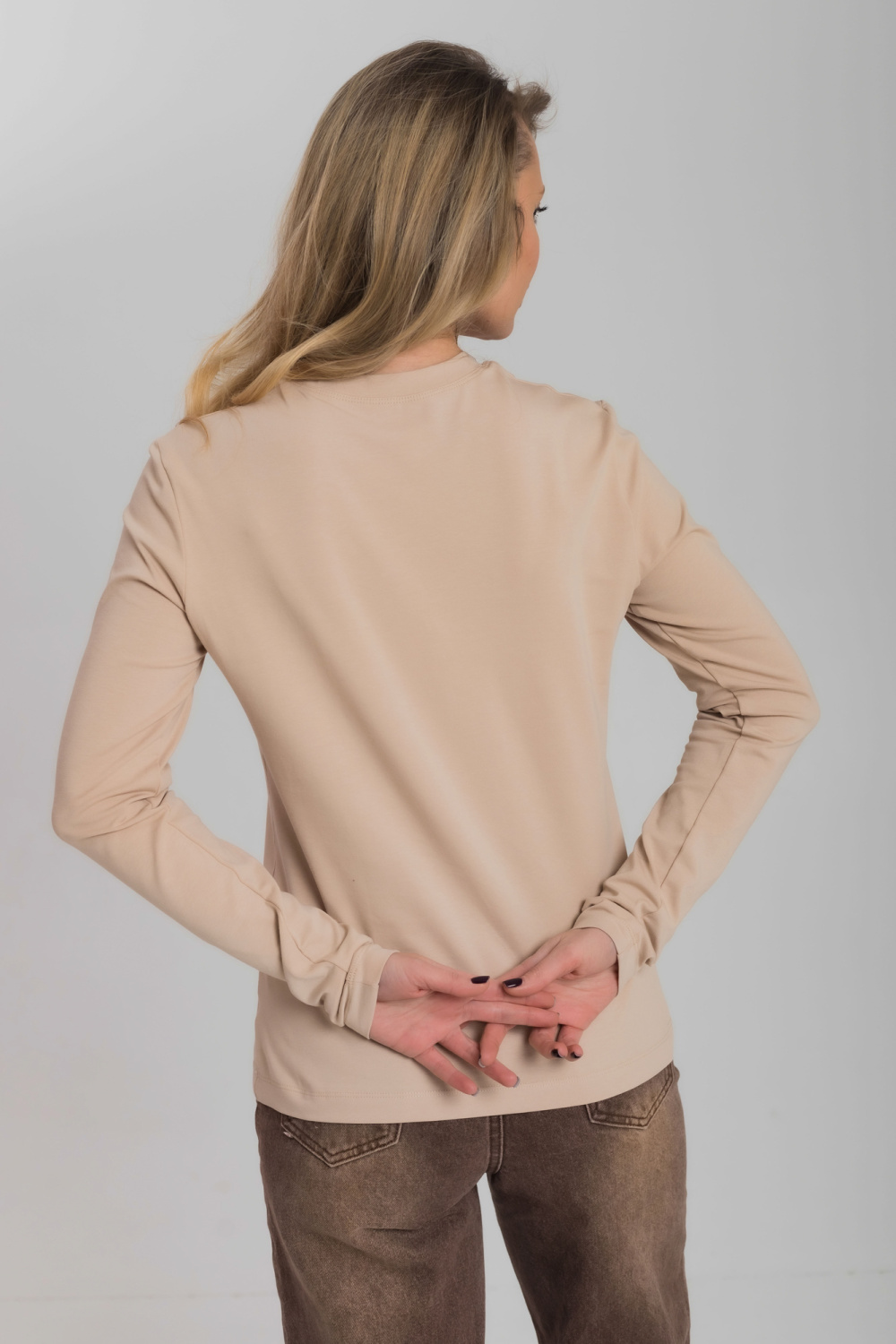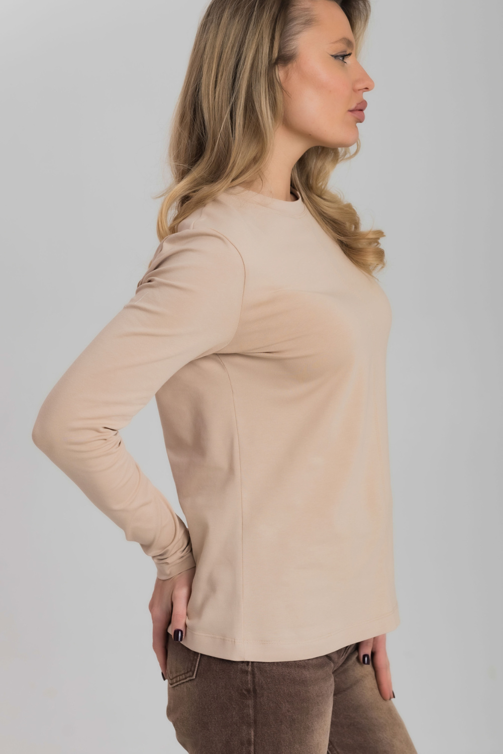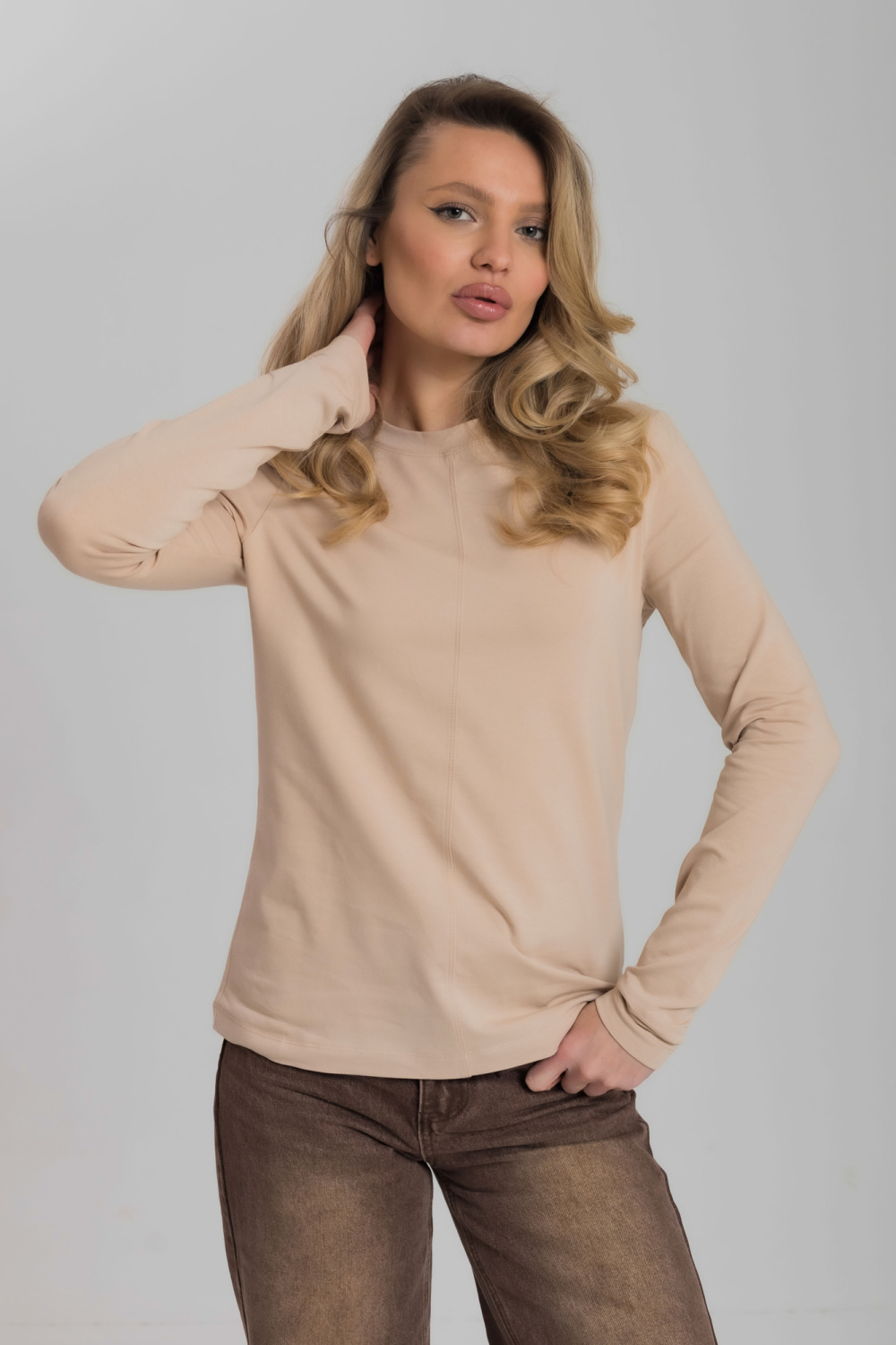 Лонгслив полуприлегающего силуэта из однотонной кулирки