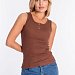 Майка женская на широких бретелях, с круглым вырезом горловины. Силуэт облегающий, майка выполнена из полотна в рубчик (кашкорсе-вискоза), спереди планка на кнопках.