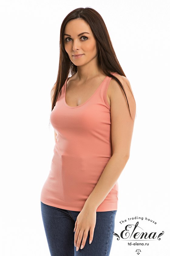 Майка из кашкорсе-вискозы с мягким V-образным вырезом. Горловина и проймы обработаны бейкой.