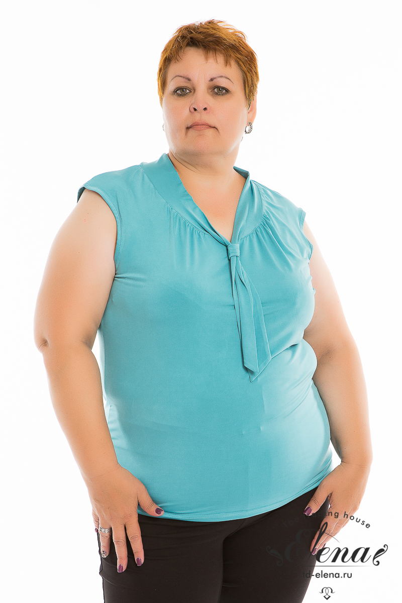Майка со спущенным рукавом выполнена из вискозы с эластаном. Силуэт полуприлегающий. Горловина оформлена широкой планкой-галстуком, пропущенным через шлёвку.