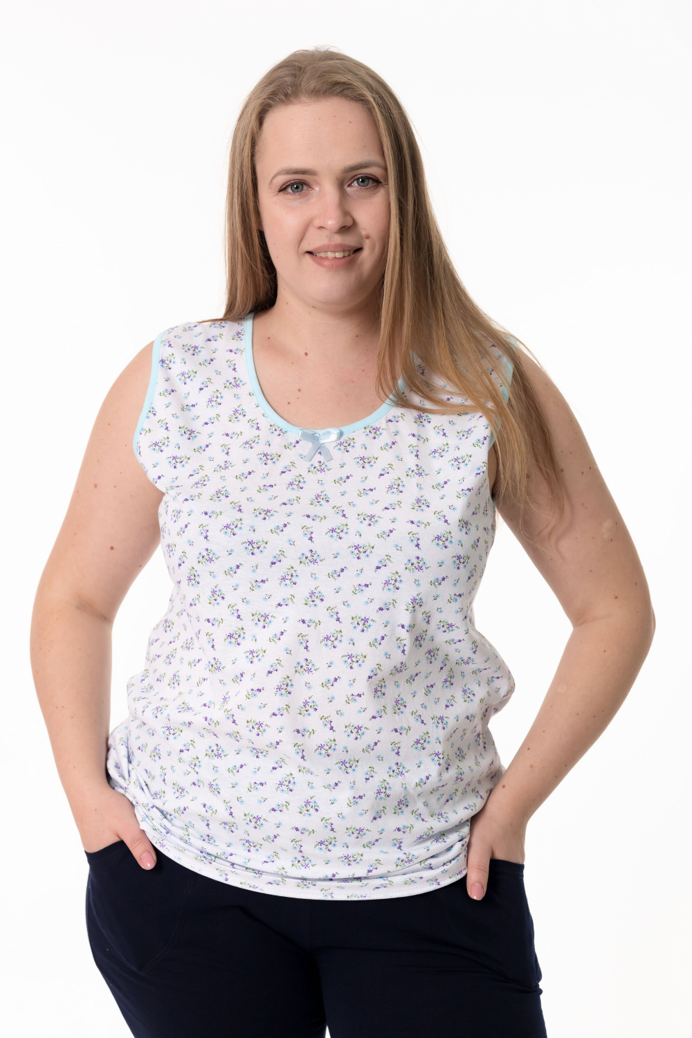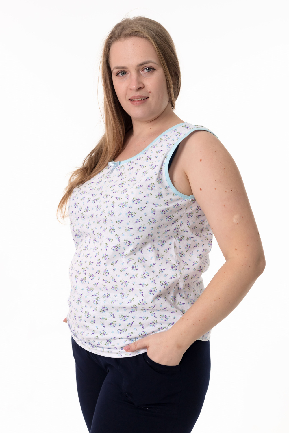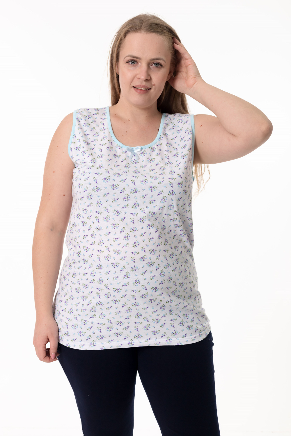 Майка нательная из хлопка, горловина и проймы обработаны бейкой.