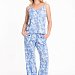 Пижама выполнена из мягкой кулирки с набивным рисунком "кораллы" и состоит из топа на бретелях и брюк. Брюки имеют боковые карманы и притачной пояс на резинке, обеспечивающий удобную посадку. Топ дополнен регулируемыми бретелями и застёжкой спереди на пуговицы, что делает модель не только комфортной, но и практичной в носке.