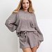 Женская пижама из вязаного полотна — уютный комплект, созданный для комфортного отдыха и стильных домашних образов. Верх выполнен со спущенной линией плеч, свободным силуэтом и небольшой планкой на пуговицах, что добавляет акцент и позволяет регулировать посадку по горловине. Рукава – объемные, на манжете, создают расслабленный и стильный силуэт. Шорты на эластичном поясе с декоративным шнуром обеспечивают удобную посадку и не сковывают движений. Мягкое вязаное полотно приятно к телу, хорошо дышит и дарит ощущение тепла и уюта.