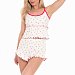 Женская пижама выполнена из кашкорсе с набивным рисунком и состоит из топа и шорт. Топ на бретелях украшен широкой притачной оборкой по низу, которая создаёт игривый силуэт. Короткие шорты дополнены изящной оборкой, приподнятой к боковому шву для динамики. Детали отделки — бейка и аккуратная строчка микрооверлока — выполнены в ярком контрастном цвете, подчёркивая качество и стиль комплекта. Идеальный выбор для комфортного сна и беззаботного отдыха.