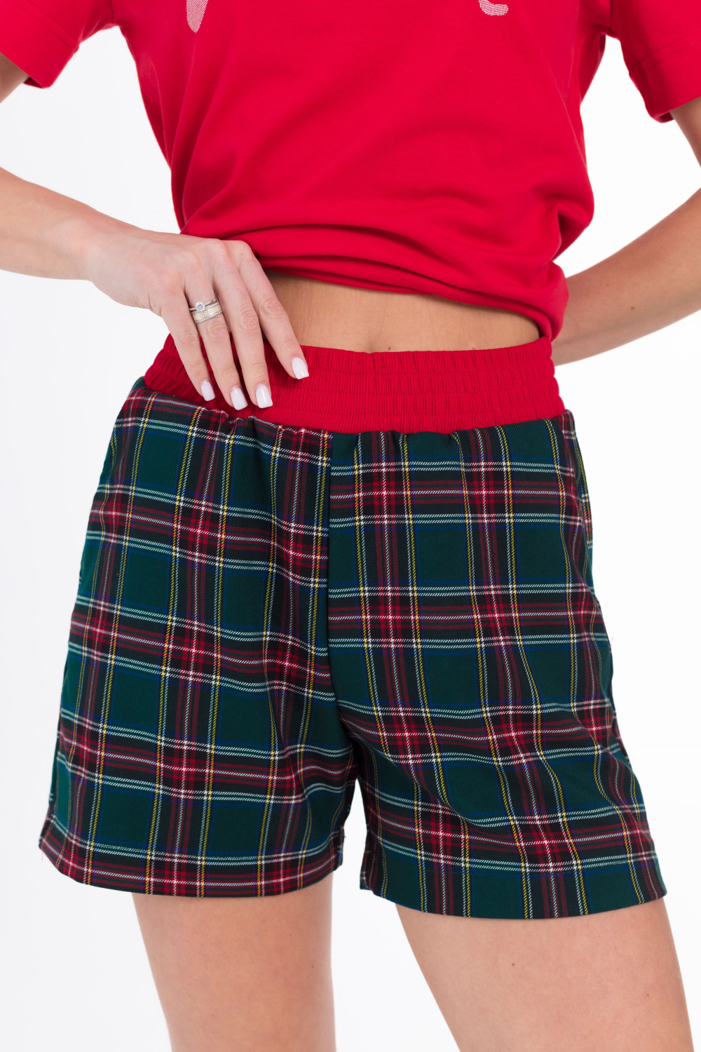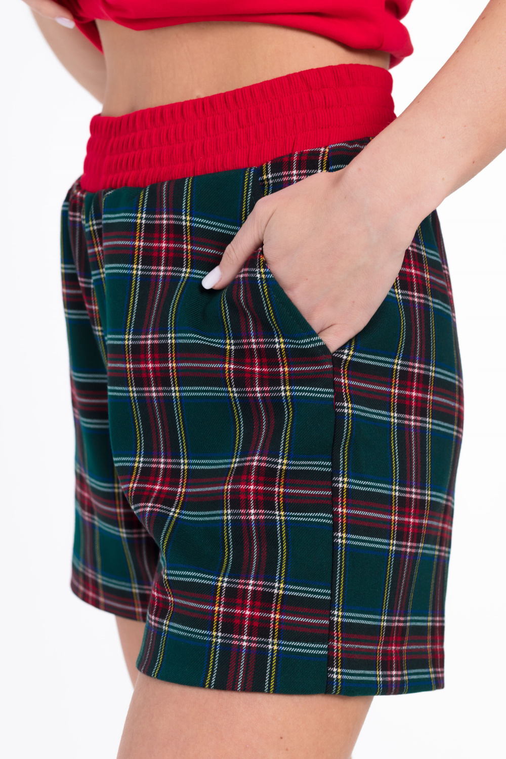 Шорты с боковыми карманами и притачным поясом на резинке из кашкорсе.