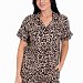 Женская пижама рубашка и шорты изготовлена из мягкой и приятной к телу ткани — кулирки реактив в бежевом цвете с набивным рисунком леопард.