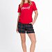 Пижама женская. Футболка однотонная, с коротким втачным рукавом и планкой по горловине, спереди нанесён принт.