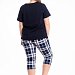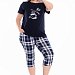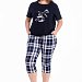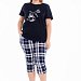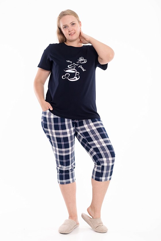 Женская пижама — отличный выбор для комфортного сна и отдыха. Пижама состоит из футболки и капри, выполненных из мягкого хлопкового полотна. Футболка однотонная, с коротким рукавом и принтом спереди. Капри из кулирки с набивным рисунком, с боковыми карманами и поясом на резинке, что обеспечивает свободу движений и комфортную посадку.