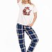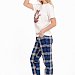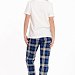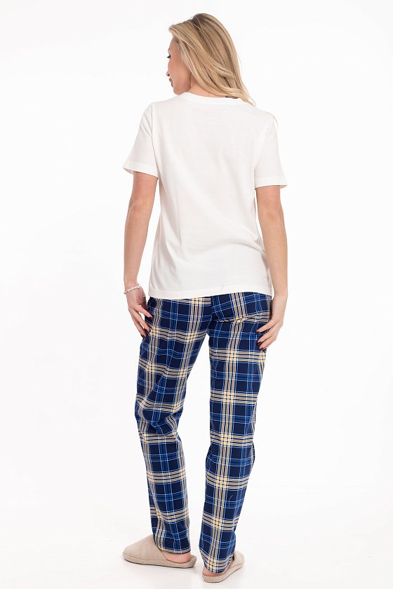 Женская пижама — отличный выбор для комфортного сна и отдыха. Она состоит из футболки и брюк, выполненных из мягкого хлопкового полотна. Футболка имеет короткий втачной рукав и планку по горловине, что обеспечивает удобство при носке. Однотонный дизайн футболки дополнен принтом спереди. Брюки изготовлены из футера 2-х нитки с начесом с набивным рисунком в клетку и имеют пояс на резинке, который обеспечивает комфортную посадку. Такая пижама идеально подойдёт для повседневной носки дома или во время отдыха. Она изготовлена из натуральной ткани, которая позволяет коже дышать и обеспечивает комфортный сон.