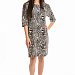 Платье выполнено из штапеля с набивным рисунком, со спущенным рукавом длиной до локтя. Вырез горловины овальный. Платье короткое, объёмное в верхней части.
