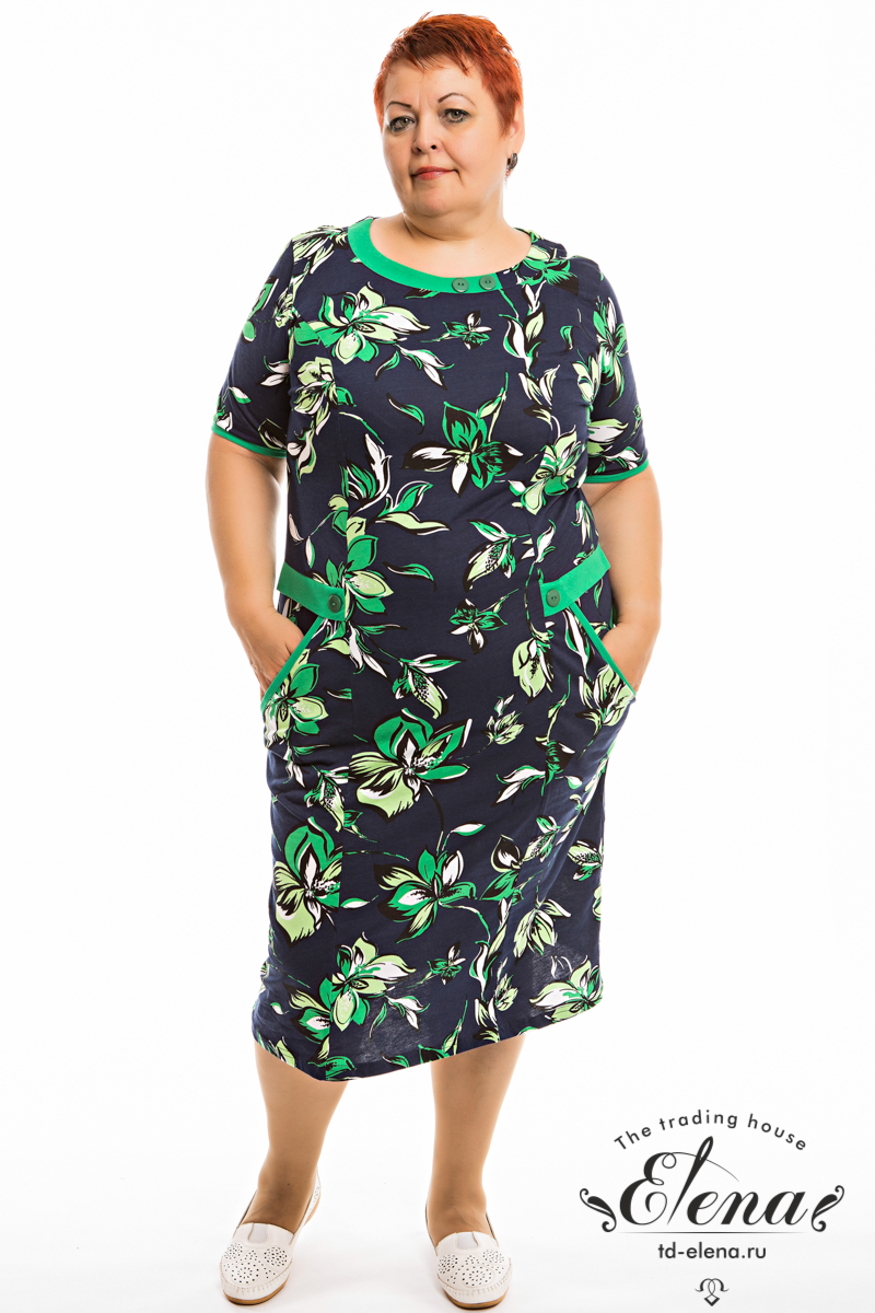 Платье из х/б полотна с отделочными деталями из однотонной ткани. С карманами по бокам. На планках горловины и карманов в качестве украшений использованы пуговицы.