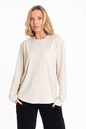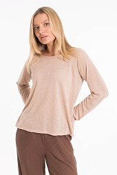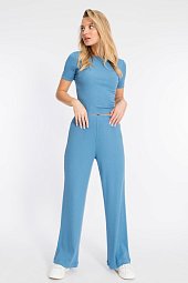 Рукав цельнокроеный, короткий. Слева на полочке в рельефе разрез. По шву выше рельефа пуговицы. Горловина и низ рукавов обработаны бейкой. -