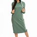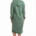 Платье выполнено из футера с лайкрой. Спереди расположен карман "кенгуру" и нанесён оригинальный принт. В капюшоне и по низу платья вставлен шнур. С левой стороны, снизу, расположен небольшой разрез.