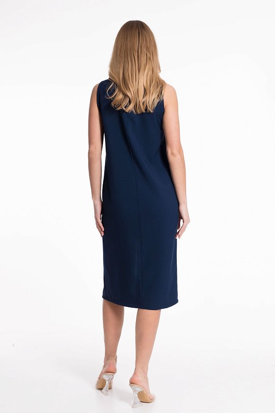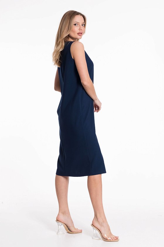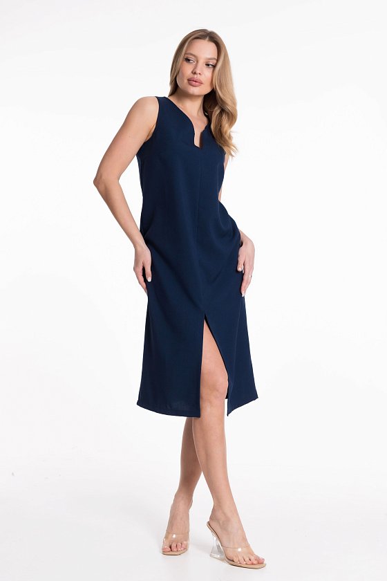Платье из полотна "искусственный лен" прямого силуэта, в переднем шве разрез.