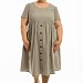 Платье из однотонного хлопка жаккард. С коротким втачным рукавом и овальным вырезом горловины. Спереди и на спинке фигурная линия отреза юбки. Юбка со сборкой, спереди застрочена складка, имитирующая застёжку на пуговицы. В боковых швах расположены карманы.