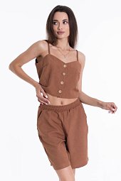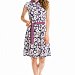 Платье выполнено из хлопкового полотна с набивным рисунком. По линии талии отрезное. Пояс, воротник и планка до талии с застёжкой на пуговицы из однотонного полотна. Рукав короткий - крылышко.