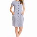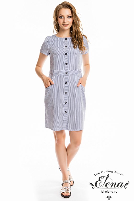 Платье из тонкой джинсы полуприлегающего силуэта. Рукава короткие, спереди застёжка на пуговицы по всей длине изделия. По бокам размещены карманы.