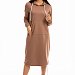 Платье выполнено из футера с лайкрой. Спереди расположен карман "кенгуру" и нанесён оригинальный принт. В капюшоне и по низу платья вставлен шнур. С левой стороны, снизу, расположен небольшой разрез.
