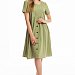Платье из однотонного хлопка жаккард. С коротким втачным рукавом и овальным вырезом горловины. Спереди и на спинке фигурная линия отреза юбки. Юбка со сборкой, спереди застрочена складка, имитирующая застёжку на пуговицы. В боковых швах расположены карманы.