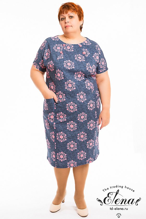 Платье выполнено из кулирного х/б полотна. Платье полуприлегающего силуэта. Шов на спинке подчеркивает талию. Вырез горловины украшают пуговицы. Рукав цельнокроеный, обработан притачной планкой. По бокам расположены карманы.