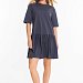 Платье свободного покроя выполнено из однотонной кулирки. Платье со спущенным рукавом, юбка слегка присборенная, с заниженной линией талии. С левой стороны накладной карман с принтом.