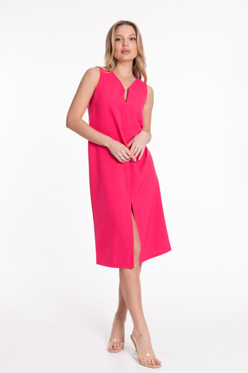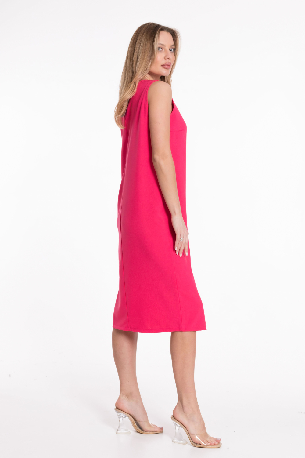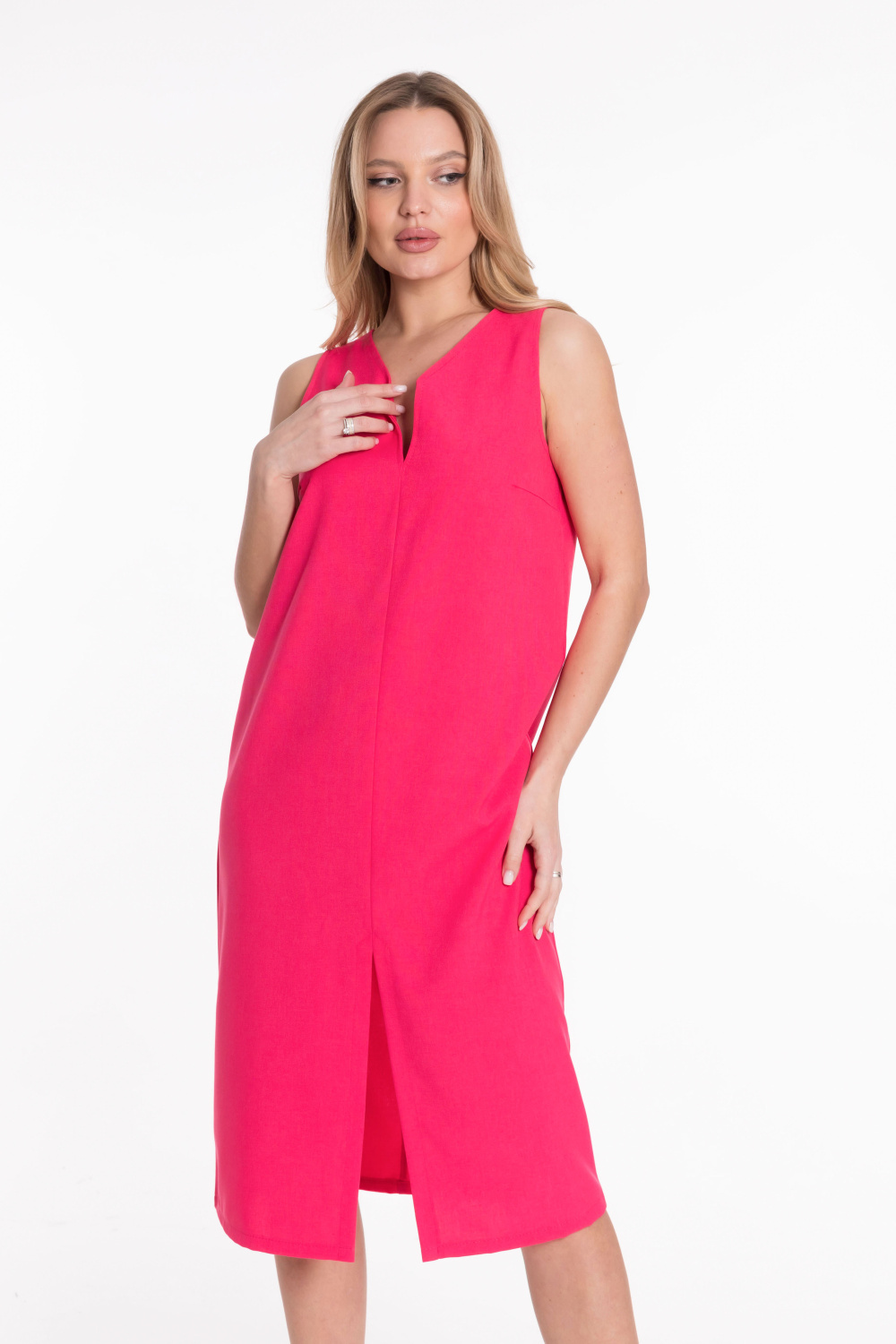 Платье из полотна "искусственный лен" прямого силуэта, в переднем шве разрез.