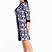Женское платье выполнено из полотна академик. Горловина имеет круглый вырез, рукава длинные. В качестве отделки однотонные вставки из отделочного полотна.