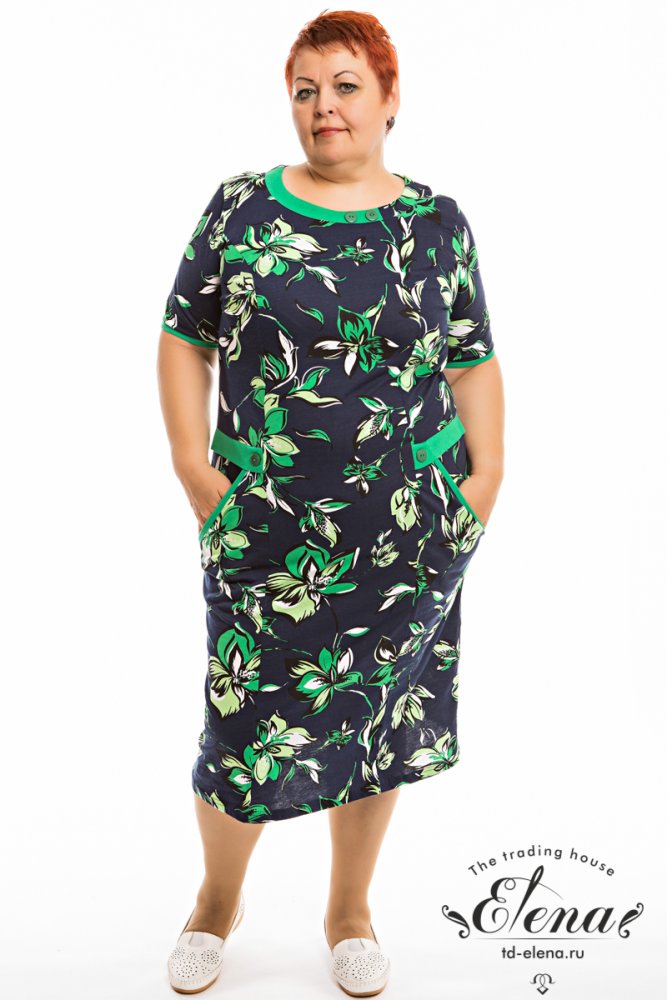 Платье с коротким рукавом, накладным карманом (кенгуру) и вышивкой на спине. Размерный ряд: 42 - 56.