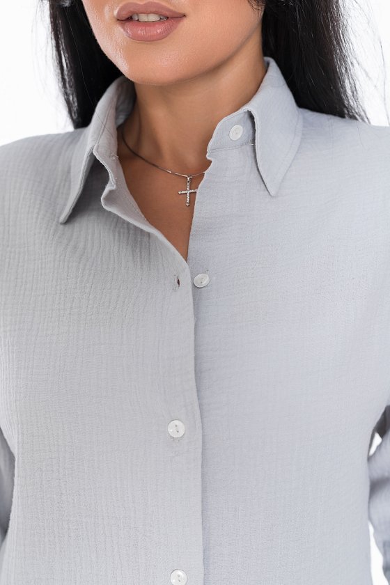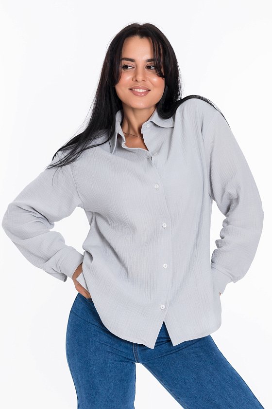 Женская рубашка — отличный выбор для повседневной носки. Она изготовлена из мягкого, лёгкого натурального материала — муслина. Рубашка имеет длинный спущенный рукав и застёжку на пуговицы. Воротник на отрезной стойке придаёт модели элегантность. В боковых швах есть небольшие разрезы, которые добавляют изюминку в дизайн. Такая однотонная рубашка идеально подойдёт для прогулок, отдыха или неформальных мероприятий. Она выполнена из качественного материала, который хорошо пропускает воздух и обеспечивает хорошую вентиляцию.