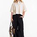 Рубашка выполнена из однотонного натурального льна с вискозой. Рубашка короткая, свободного силуэта с застёжкой на пуговицы спереди. Воротник на отрезной стойке, спереди размещены накладные карманы, рукава короткие с притачной планкой.