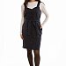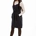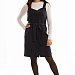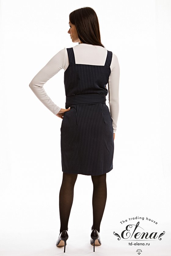 Женский сарафан на бретелях выполнен из ткани "джинса" в мелкую вертикальную полоску. Спереди сарафан застёгивается на пуговицы, линию талии подчёркивает пояс.