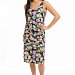 Сарафан выполнен из кулирки. Круглый вырез горловины и проймы обработаны бейкой. Длина ниже колен, по бокам разрезы.