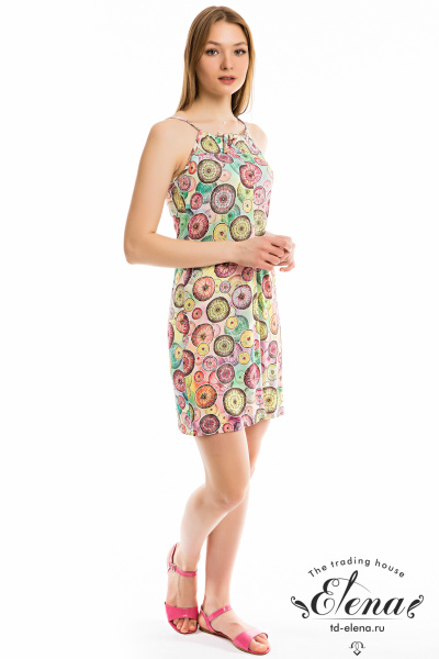 Сарафан выполнен из вискозного полотна с набивным рисунком. Длину бретелей можно регулировать при помощи завязки.