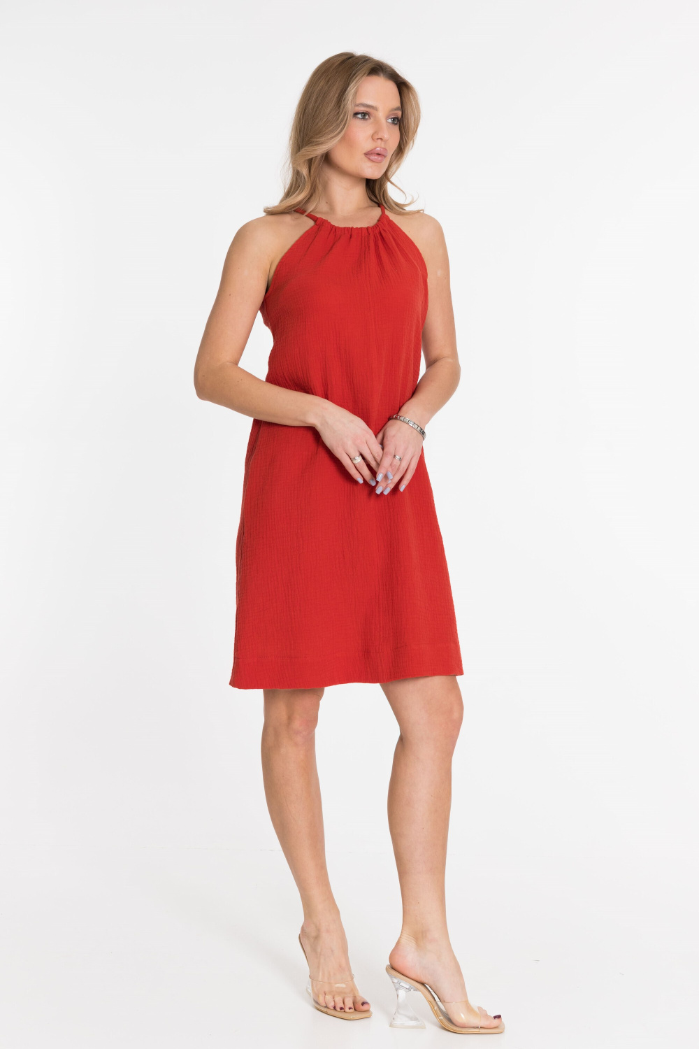 Сарафан летний из муслина. Свободный силуэт, в кулиску вставлен шнур из основного полотна, который заменяет бретели.