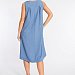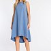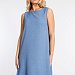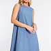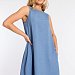 Сарафан из однотонного искусственного льна. Силуэт сарафана трапециевидный, по бокам размещены два кармана. На спинке от кокетки две встречные складки, низ сарафана разноуровневый.