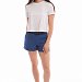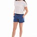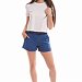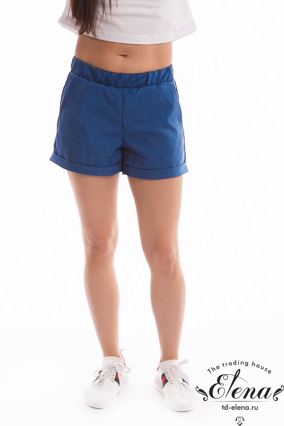 Шорты выполнены из искусственного льняного полотна. Пояс с резиной внутри. В боковых швах имеются карманы. Снизу шорты оформлены отворотами.