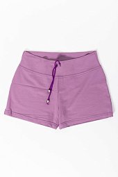 Шорты из однотонного искусственного льна, с боковыми карманами и притачным поясом на резине. Через петли пояса продёрнут шнур.