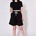 Женские шорты из однотонного футера с лайкрой. Расклешённый покрой, длина чуть выше колена. Шорты с боковыми карманами и поясом на резине и шнуре.